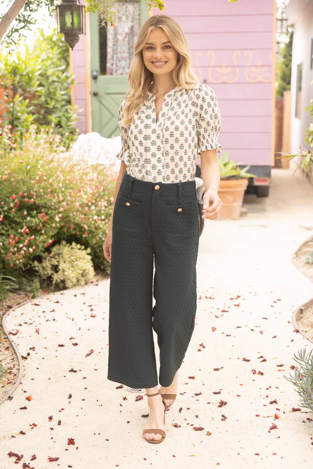• V-neckline • Short puff sleeve • Smocked cuff • Folded placket • Floral woven fabric •
