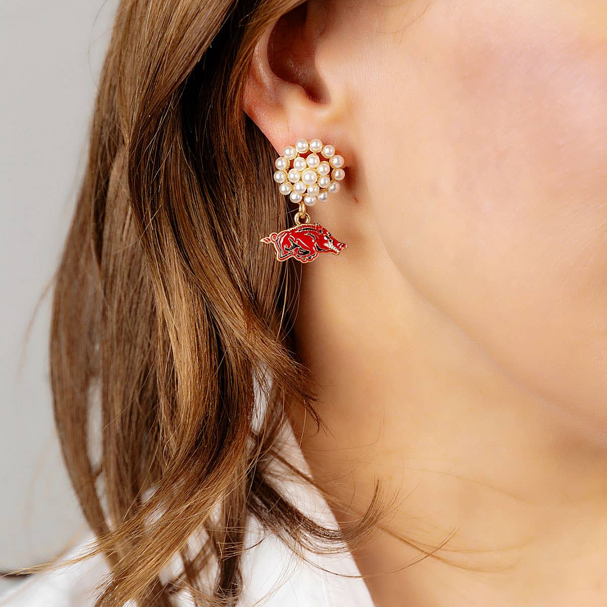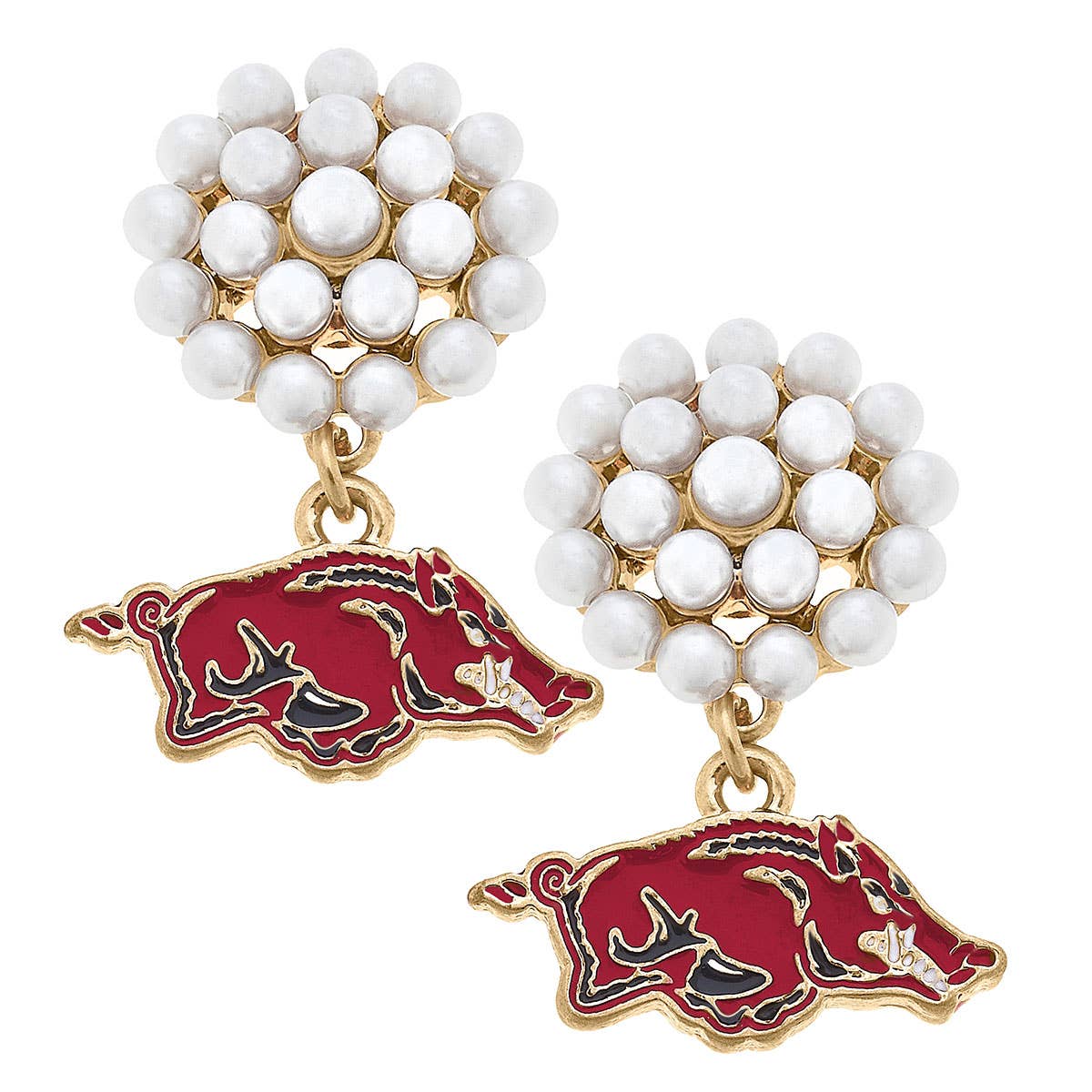 Arkansas Razorbacks Pearl Cluster Enamel Drop Earrings