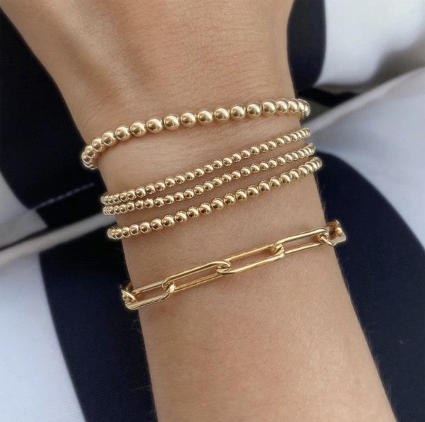 14 k gold-filled bead bracelet. 1 size fits most. Comes in 3 mm, 4mm and 5 mm size beads.