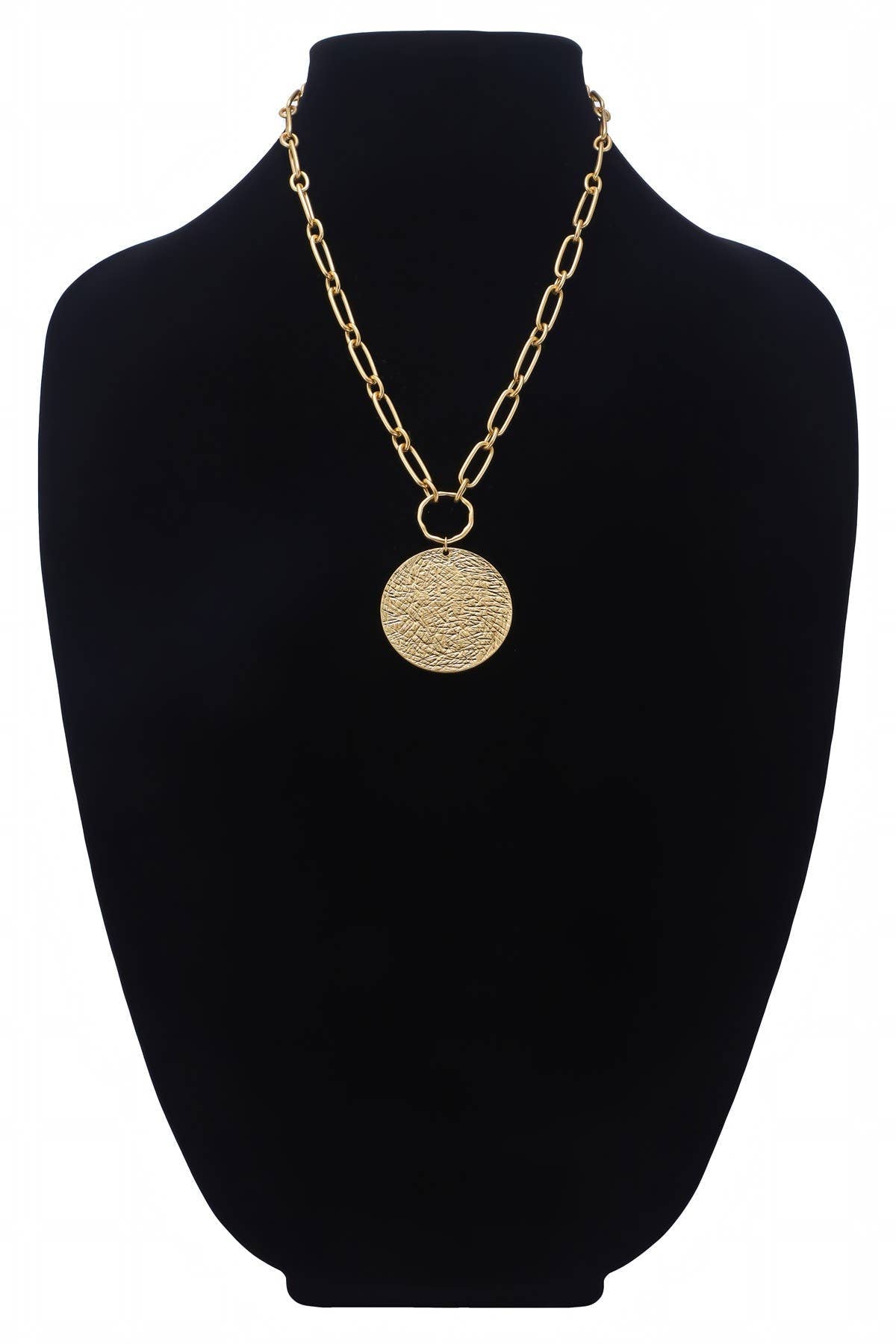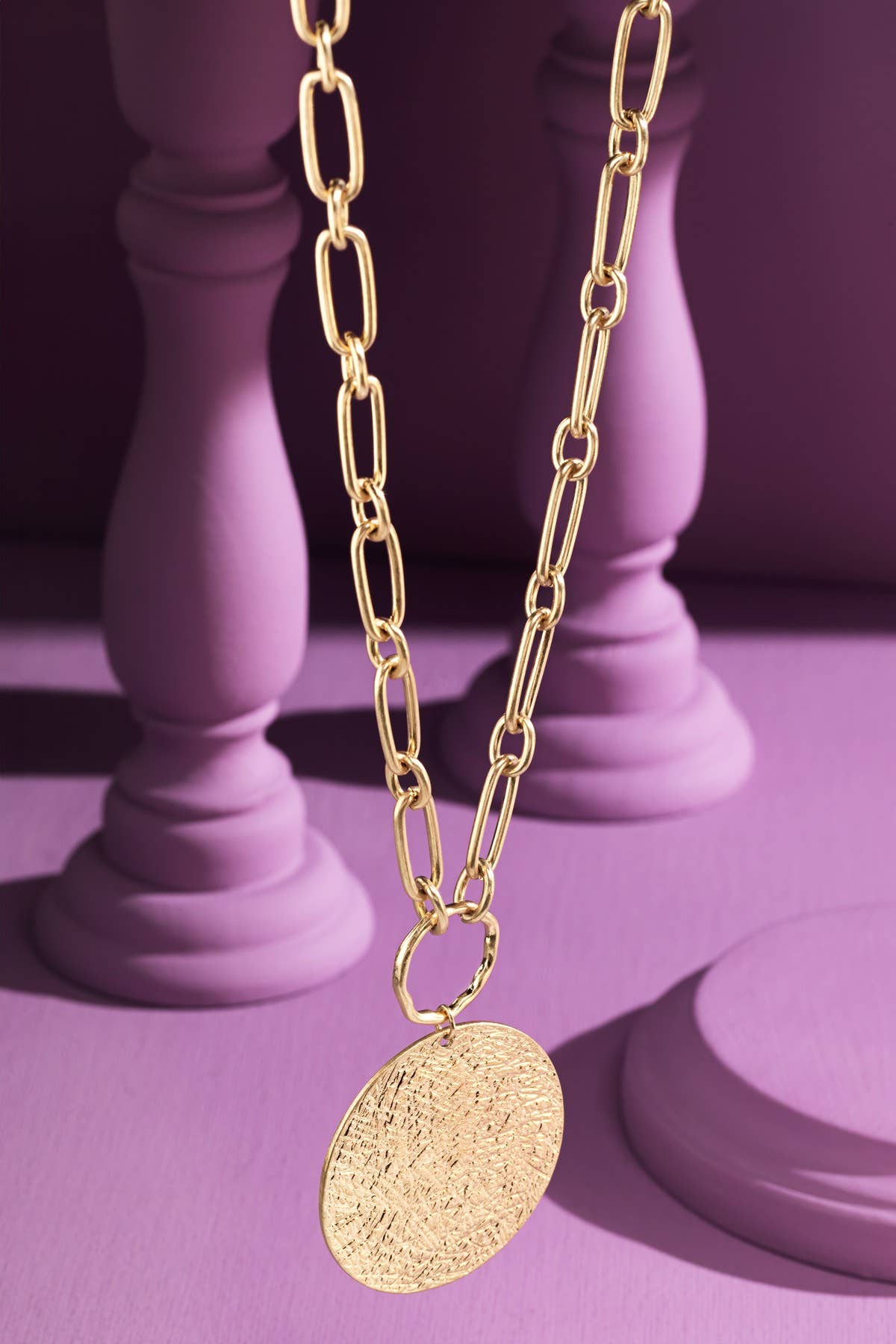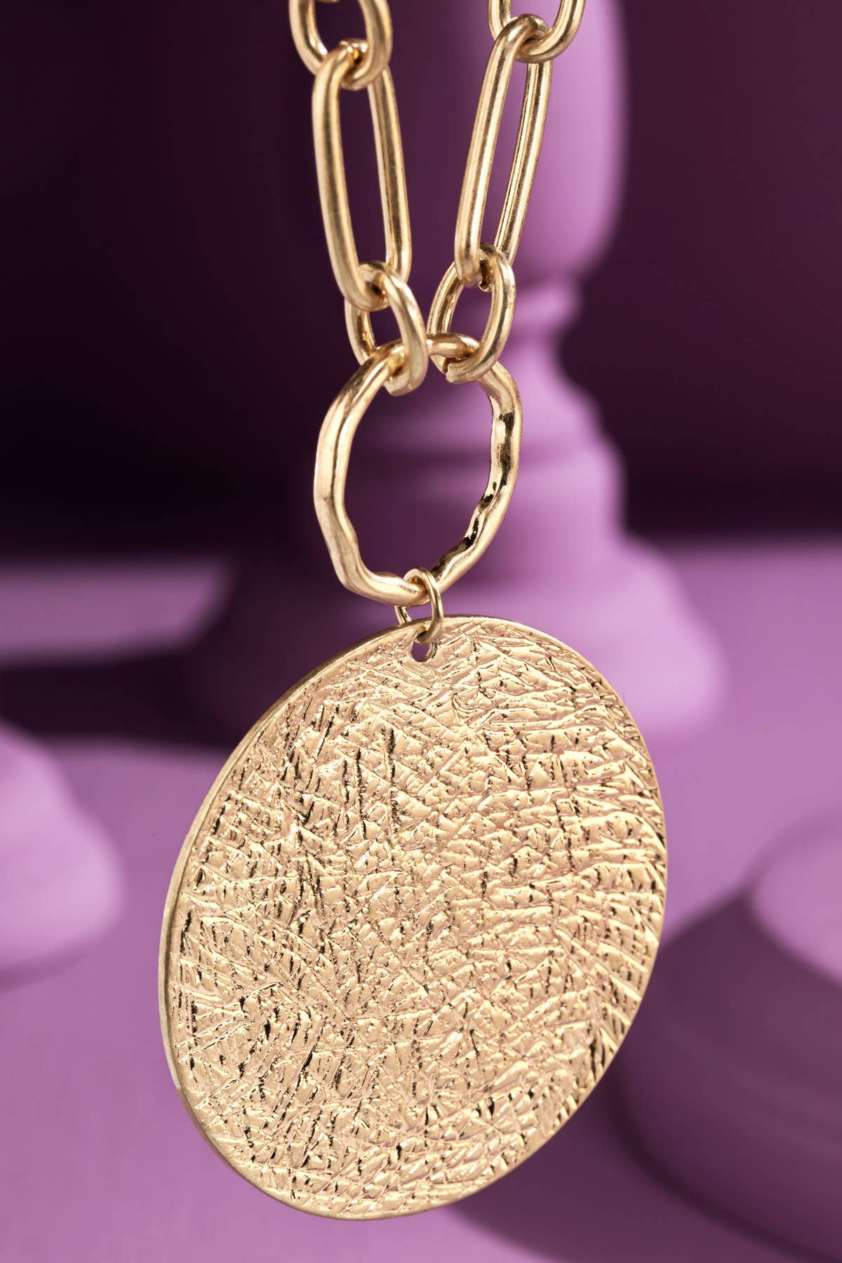 Classic layered chain link necklace with hammered pendant *Metal *Nickel/Lead Compliant *APPROX. L 20" Ext 3" Pendant Diameter 1.5" 1.23oz *Imported