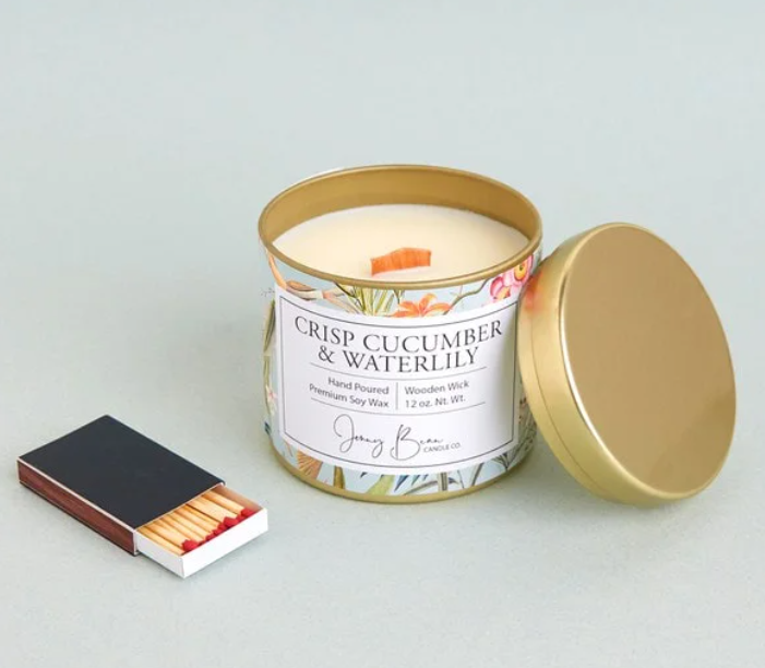 Evoke a crisp, aquatic sensation that drips delightful, natural hints of lemon, waterlily, moss, cucumbers, and greens. 12 oz. soy wax