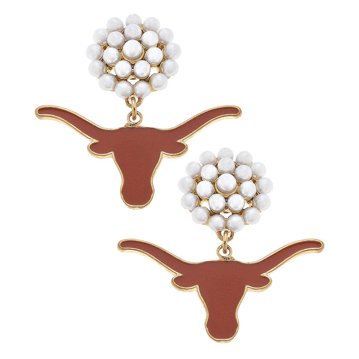 Texas Longhorns Pearl Cluster Enamel Drop Earrings